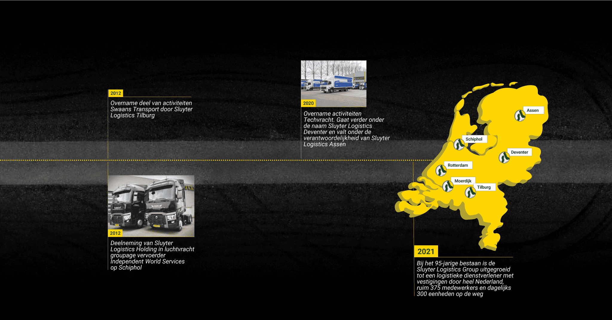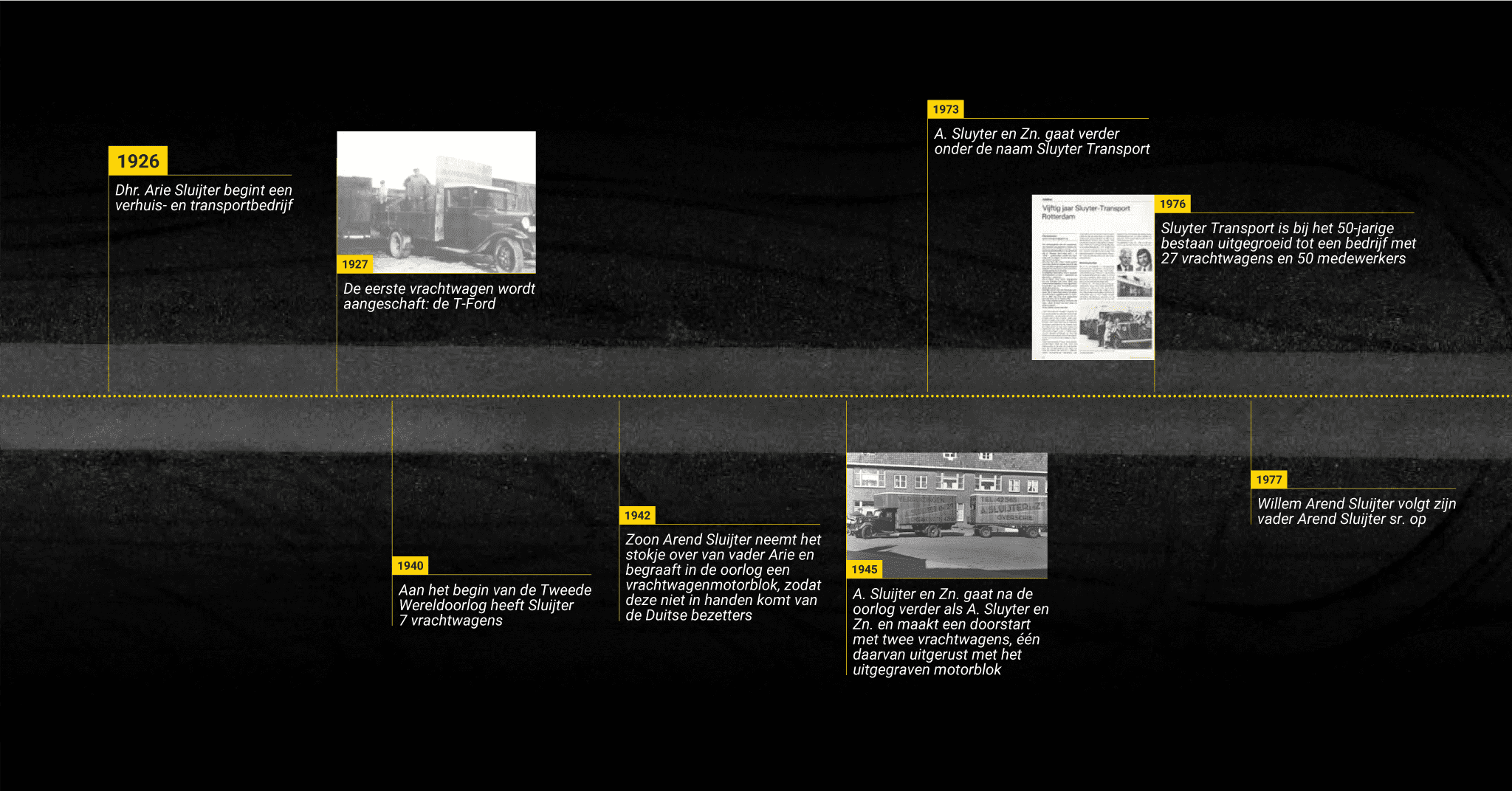 In 1926 is de heer Arie Sluijter in Rotterdam met een transportonderneming gestart. In de negentiger jaren is het bedrijf na drie generaties in nieuwe handen overgegaan. De drie eigenaren vormen sindsdien de directie van de onderneming die uiteindelijk is uitgebreid met volledig operationele centra in Assen, Tilburg, Deventer en Schiphol.